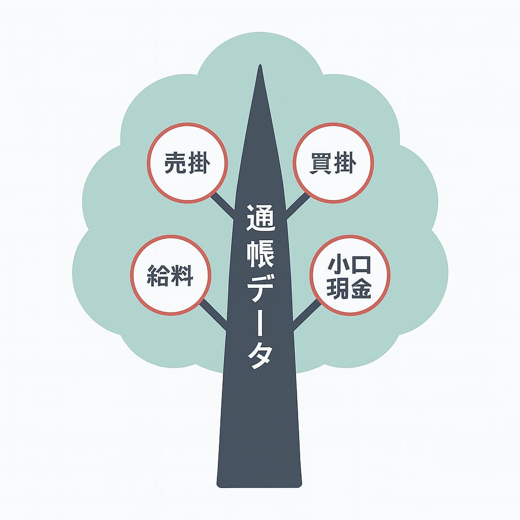 妙な例えですが、通帳データで「木の幹」をつけて、請求書や他の資料で「枝葉」をつけていくイメージといえば伝わるでしょうか。